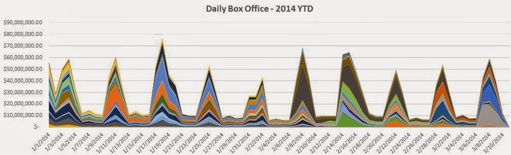 Normally, analysis of the domestic box office in order to discern any meaningful insight is difficult. New movies are released every week, each movie is released in a different number of theaters, and patterns of movie attendance vary from day to day, week to week, month to month, and season to season. If more people tend to go to the movies on Monday than on Tuesday, how can you possibly tell whether a particular movie is doing well on Tuesday versus Monday?